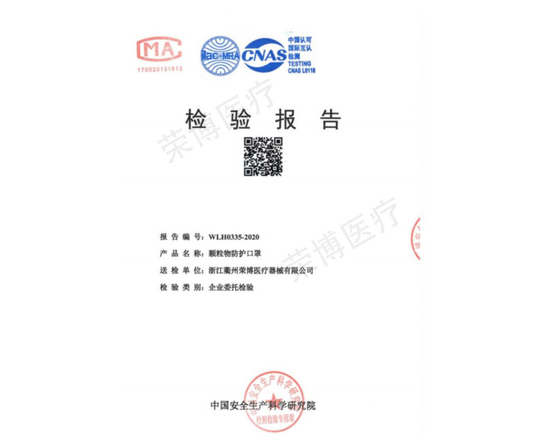 顆粒物防護(hù)口罩檢驗(yàn)報(bào)告