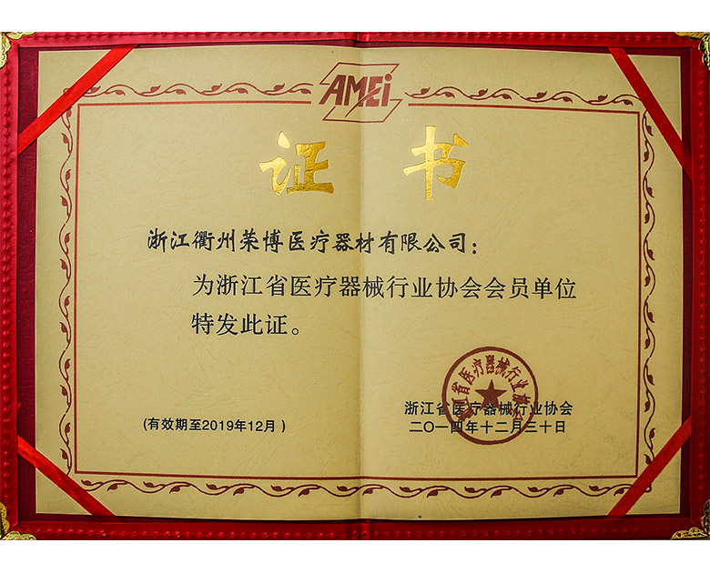 中國醫(yī)療器械行業(yè)協(xié)會會員證書